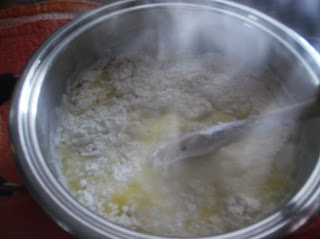 Numa taça grande, juntar os ingredientes pela ordem que estão acima, mexendo entre cada adição com as varas.